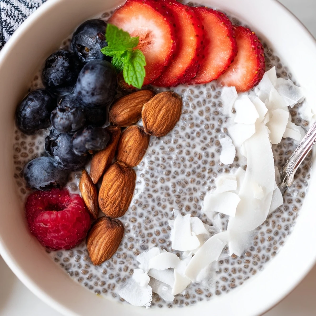 Fresh berries, chopped nuts, shredded coconut, or a swirl of fruit purée add texture and brightness. Layer with fruit for parfaits or sprinkle mint for a fresh accent.