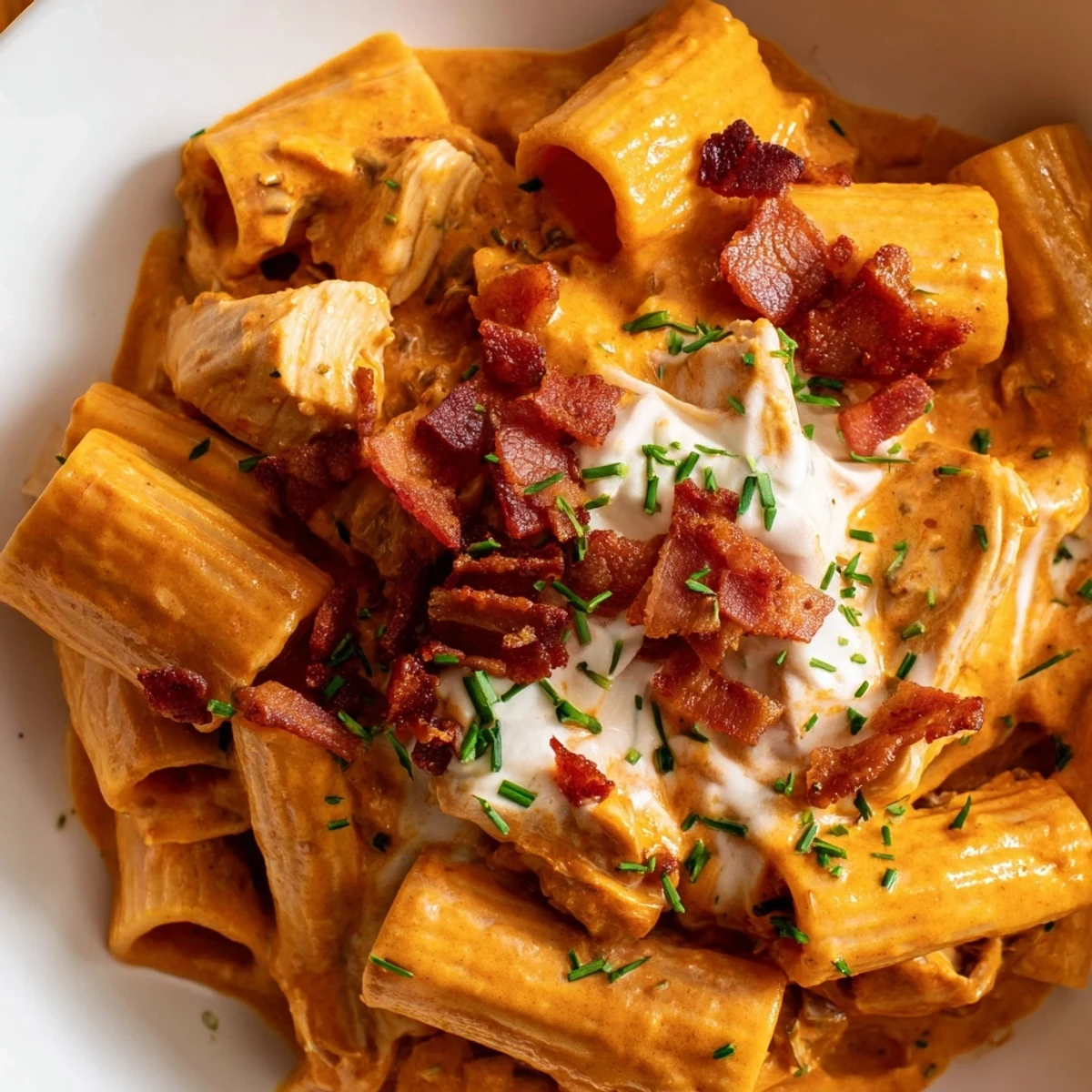 Indulge in this decadent pasta dish combining tender chicken pieces with a velvety smooth cheese sauce. The rich creaminess comes from softened cream cheese, heavy cream, and sharp cheddar, perfectly coating al dente penne or rigatoni. Crispy beef bacon adds savory crunch throughout, while fresh spring onions, parsley, and chives bring brightness to each bite. Seasoned with smoked paprika, garlic powder, and onion powder, this skillet meal delivers layers of flavor in under an hour. The sauce achieves silky consistency with reserved pasta water, ensuring every strand is generously coated. Perfect for hearty weeknight dinners or special occasions when comfort food is calling.