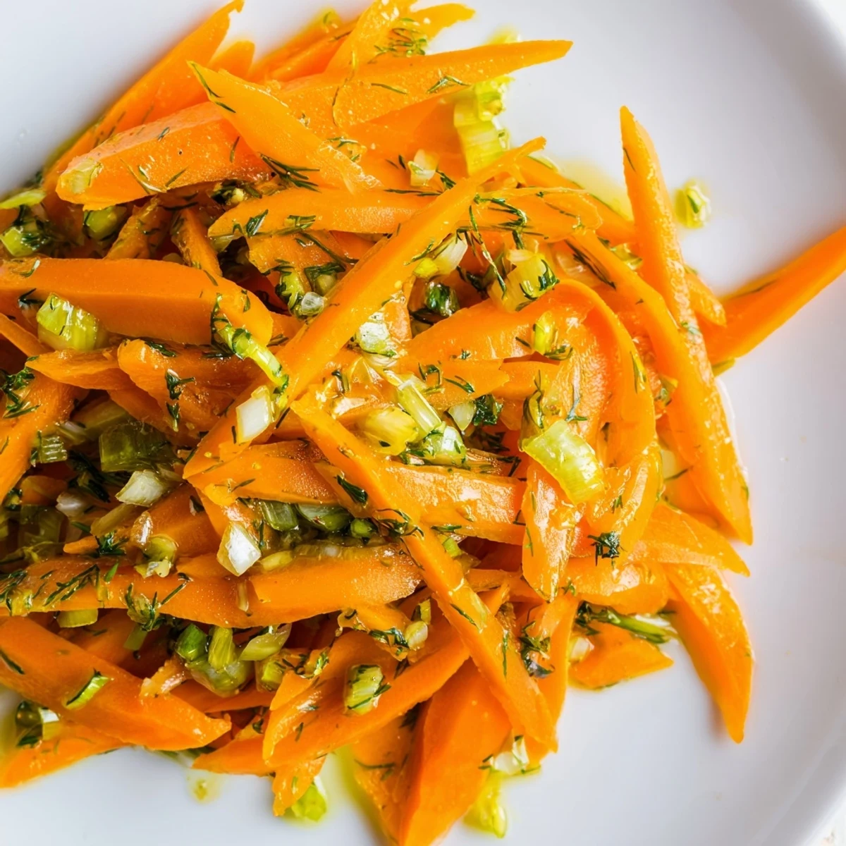 This vibrant carrot salad combines crisp julienned vegetables with a bright lemon-dill marinade. The carrots soften slightly while absorbing the zesty flavors over an hour in the refrigerator. Fresh scallions add mild bite, while honey or maple syrup balances the acidity. Serve chilled alongside grilled proteins or as part of a spring spread. The dish comes together quickly and improves with time, making it perfect for meal prep or entertaining.